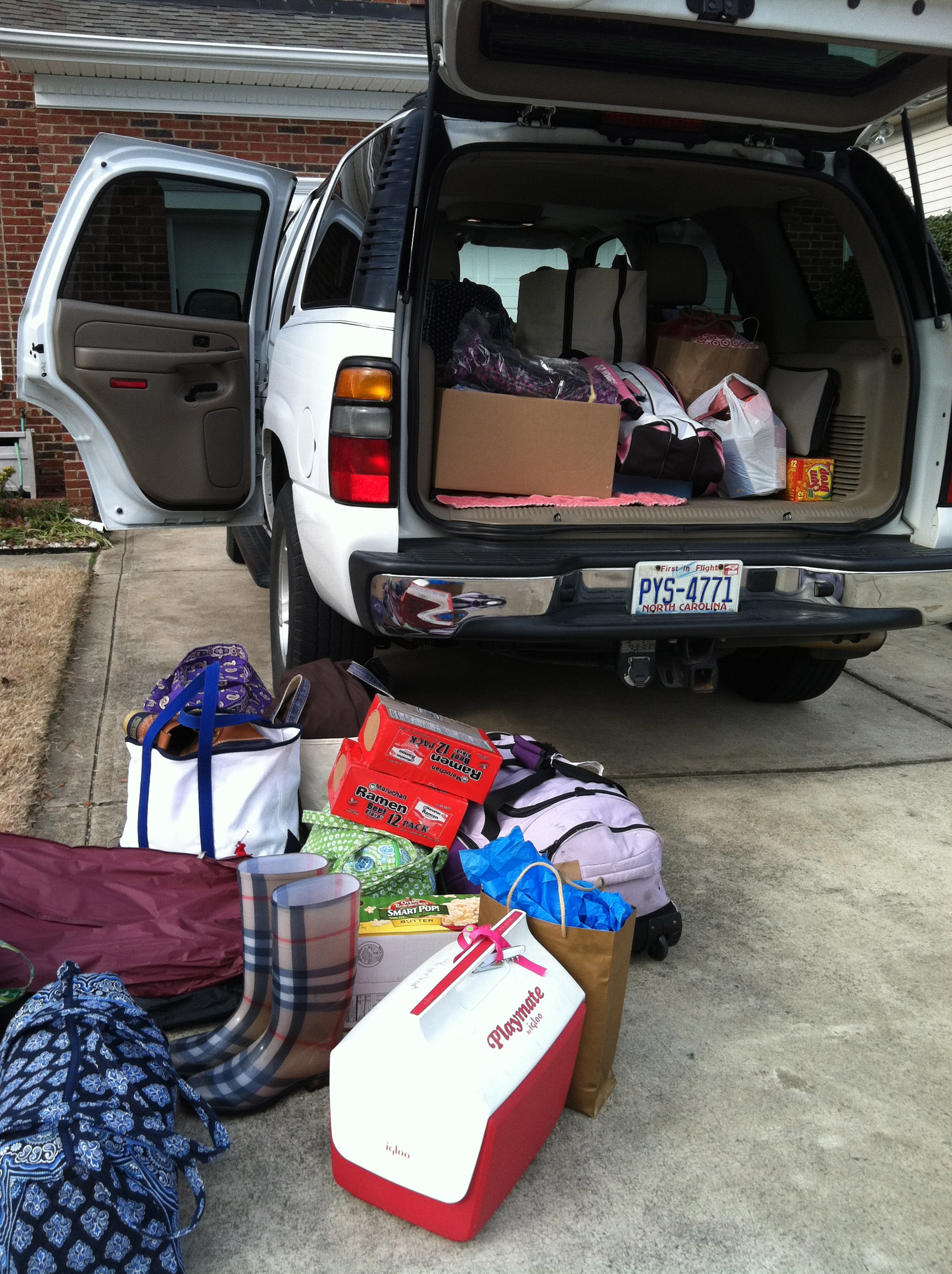 But oh right, packing for your daughter? Ask first or risk hearing, “Mawwwwwwm! I’m FIIIIIIIINE! If I need more than 3 gallons of shampoo I can hitch a ride to Walmart and get more! Besides, Courtney and I already coordinated and bought all our bedding, posters and rugs on line.” (Wherein all a mother hears is, I don’t need You anymooooorrrrrrre and your taste in decor is sooooooooooooo 1986!)