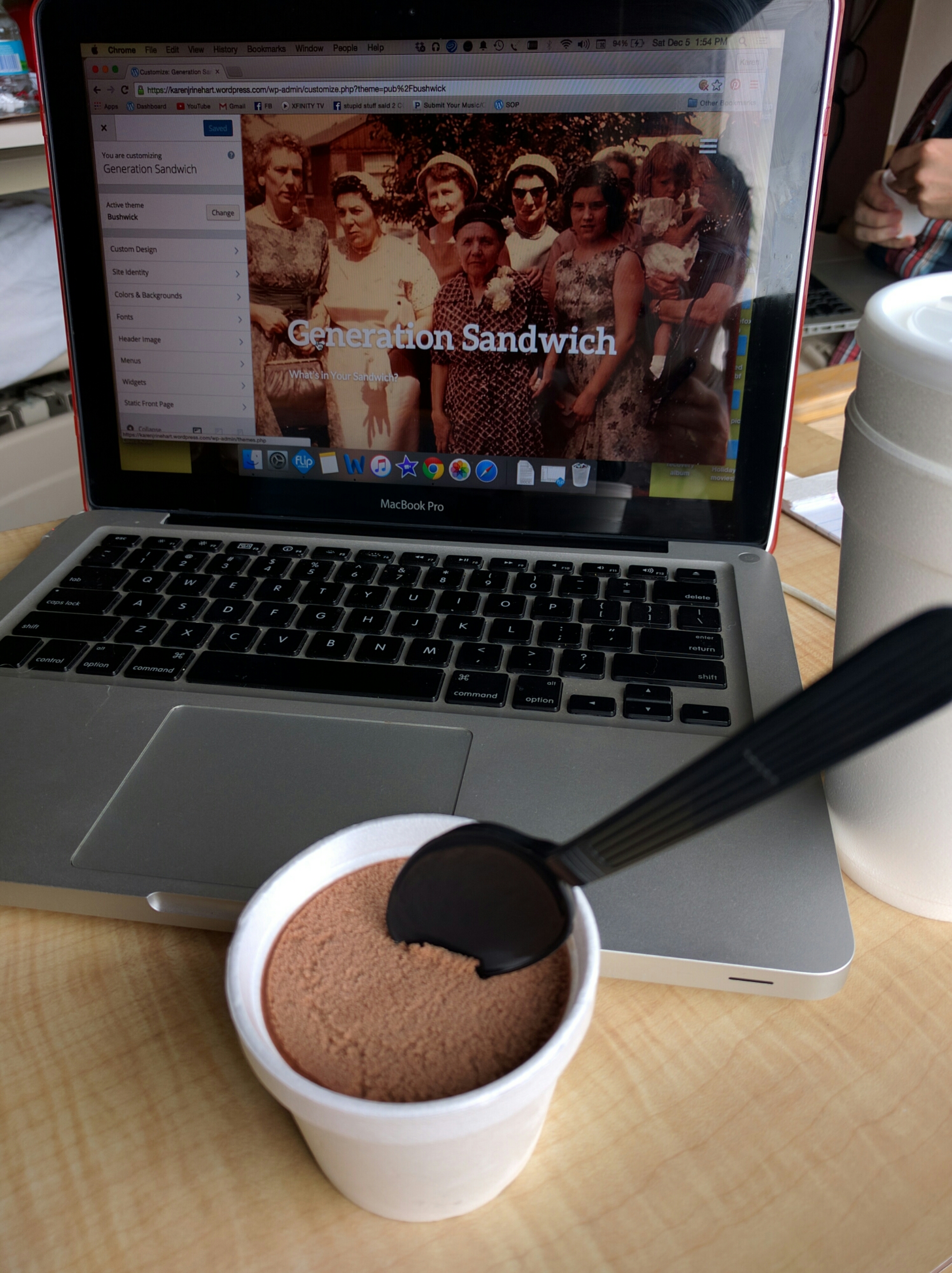 So this morning I’m walking out the door to spend the day in my dad’s hospital pack muled down with my knitting, carton of gluten free butternut squash soup, Scottish chocolate cookies from for dad, my laptop and laptop charger, hand lotion, purse, backpack, hankie, olives, phone, reading glasses, HDMI cable, Flip camera, extra pony tail accessories, mints, book outline, manicure set, flowers for the nurses and car keys.
